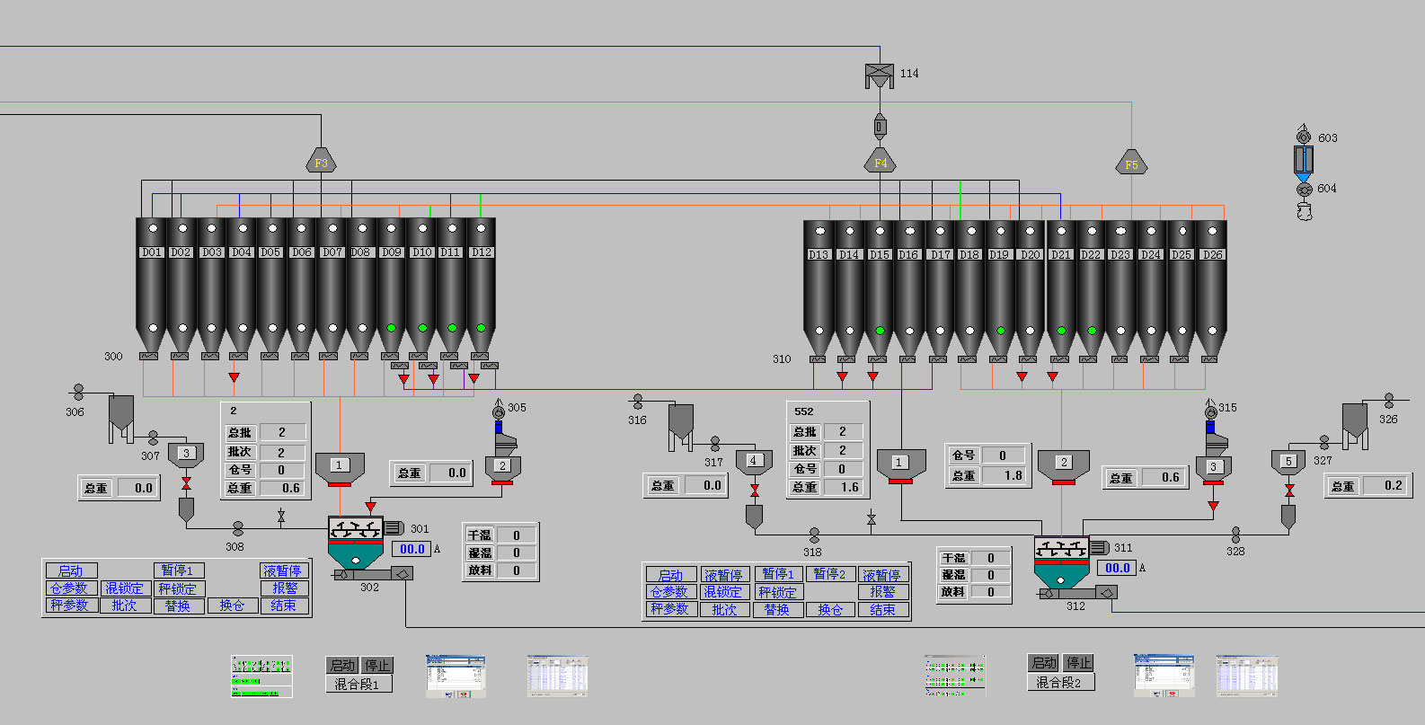 (1) 配料秤斗的控制:控制系統(tǒng)應(yīng)能同時控制多臺配料秤的作業(yè)。